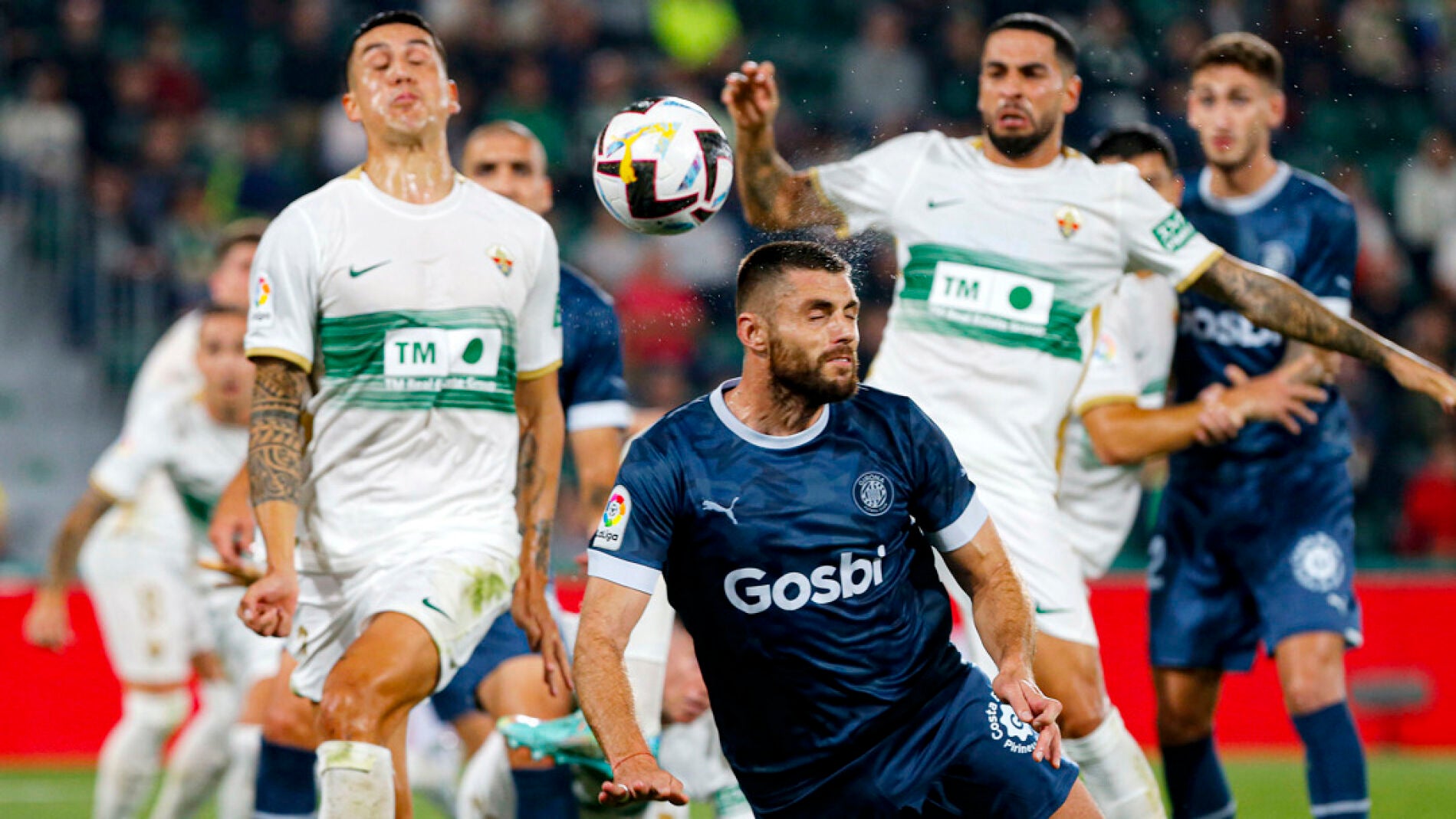 454 Final primera parte Elche 1 Girona 1. Estadio Manuel Martínez Valero Elche. 454 Remate fallado por Javi Hernández Girona remate de cabeza desde el.